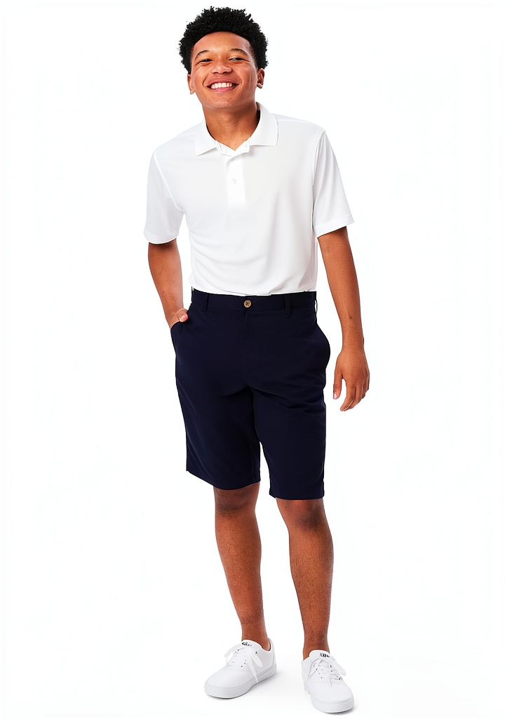 French Toast boys’ shorts are crafted from 100% polyester microfiber, offering superior moisture-wicking properties to keep young wearers dry and comfortable during active play. The fabric is designed for stretch and durability, ensuring these shorts maintain their shape and comfort over time. Key specifications include an all-around elastic waistband for easy wear and functional front slash pockets for convenience. These shorts are available in sizes ranging from 4 to 38 Regular and Husky fits, in colors like Navy and Khaki, catering to various body types and preferences.